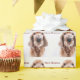 Roligtens julomslag pappra med en hedervärd Golden Retriever som har varit utanför leker i snö. Han har en stor brunt, sorgfull ögon och en svart näsa.