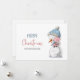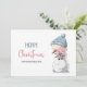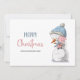 Julkort med en illustration av ett sött snögubbe som håller ett sött gris, underbar för ditt företag i hälsning och uppskattning för kunderna. Anpassa texten för att lägga till ditt eget hjärtliga meddelande. Illustrerad och designad av Patricia Alvarez.
