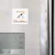 "God jul i faux guld färg och ett rödskript med illustration av ett centrum i snögubbe.