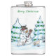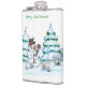 God jul! Snögubbe med katt och valp Fickplunta