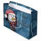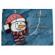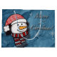 En vacker liten snögubbe med vita och röda stickade kläder på blå papper. Perfekt att önska god jul de små.