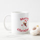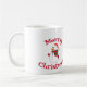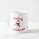 Den söta lilla snögubbe är klädd i sitt bästa för att önska alla ett God jul. Bilden finns på båda sidor av kopp så den fungerar för höger eller lämnat porrdrickare.