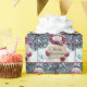 Ett glatt snögubbe, med röda öron och en motsvarande scarf, har ett tecken som lyder "God jul" i en snöbakgrund