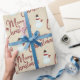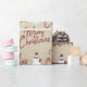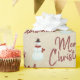 Röda God jul och snögubbe på havsbotten med snöflingor.
