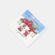 "God jul Snowing Gnome Red Lastbil Träd Farm Napkins." Blå himmel och snokande! En förtjusande Gnome-familjens träd-jordbrukskonstruktion med renar. Skripttypografiktexten lyder: "God jul, Gnomies!" Konst som målats i vattenfärg av internationellt licensierad konstnär och formgivare, Audrey Jeanne Roberts, upphovsrätt.