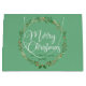 Vackra kursiva skript där man läser God jul skrapas över en elegant, en , med söt grönt mistletoe. Den vackra kalligrafin överlappar helgdag ovanför anpassningsbarna. Perfekt personlig helgdag presentsäck för en familj med namn och år. Snygg ljust grönt anpassningsbar presenter.