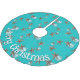 Julgran kjol i havsblå färg med mönster av stjärnfisk och anpassningsbar. Kjolen flödar runt basen av ett träd, utan bindningar eller snaps, och är en söt tropiska blå färg. "God jul" ordalydelse kurvor längst fram, eller ändra det till en namn eller annan text som passar. Den lilla bruna havsstjärnan och akvblått ornament bilder är spridda över kjolen. Välj mellan tre strukturer.