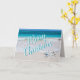 Fläckade julkort till stranden med stjärnfisk och textmallar. "God jul" på framsidan i stort vitt brev kan ändras till valfritt hälsning. Lägg till ett meddelande och namnteckning inuti. Två stjärnfiskar är dekorerade med träd-prydnadsämnen och förs över en strandscen med turkos blå vatten och slät strandsand. Välj mellan tre storlekar.