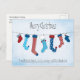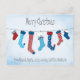 Röda, vita och blå julklappar på en vattenfärgsblå bakgrund. Anpassa texten för Glad helg eller Säsonhälsningar, stil och färg på framsidan och lägg till returadressen på baksidan.