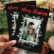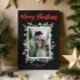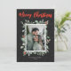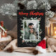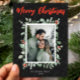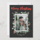 Skicka varma välgångsönskningar med detta eleganta julkort med en modern svart bakgrund, festliga botaniska accenter och ett framträdande anpassningsbart familjefoto. Den djärva röda "God Jul"-rubriken tillför en livfull säsongston, medan den redigerbara namnraden låter dig anpassa kortet för alla familjer.