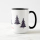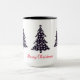 God jul i Roligtens röda kursiva text. Elegant hand plockade julgran silhuett med vitt snöflingor. Originalgrafik. Inre text kan vara personlig eller lämnat som den är. Underbar till jul eller jul i juli.