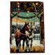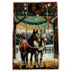 Söt julklappar med grafik på två hästar som står i en ladue som dekoreras i helgdag och söt twinkling jul ljus. Hästarna görs i en tecknad tecknad bok pop art stil. På sidan av påsen finns vindruvor med hästskotor.