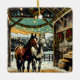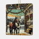 Söt julprydnad med grafik på två hästar som står i en lada som dekoreras i helgdag och söt som twinkling julen ljus. Helgdag och text på baksidan kan vara personlig. Hästarna görs i en tecknad tecknad bok pop art stil.