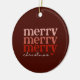 Den här festliga träd-prydnaden har texten Merry, Merry, Merry i skuggor av rosa och rött samt texten jul i vitt. Den här klassiska och reflekterande stil-dekorationen gör att du får en underbar beröring i helgdag hemdekanter. Det är också en söt julklapp! (Bakgrundsrött färg kan ändras enligt dina önskemål - gå bara in på anpassningsområdet.)