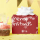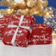 Vit God jul-text i snöflake mönster på röd bakgrund. Bakgrunden till färg kan ändras. Text kan redigeras.