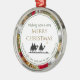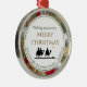 Den här festliga tre WISE MANAR-prydnaden visar en silhuett som skildrar de tre Magi efter en stjärna. Den böjda texten vid grund är en skriptversa från galatianer 4:4 - JUST VID HÖGERNA SKICKADE GOD SIN SON. Den böjda texten är ANPASSADE så att du kan ersätta den med ditt namn eller annat formuleringsval. I mitten finns GOD JUL i guld typografi. Bakgrundsbilden är en julkrans. Fin gåva till grannar, familj och vänner.