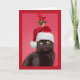 Ett superroligt sätt att önska en kattälskare en God Jul eller en Mietty Jul med denna söta svarta katten i en tomtehatt som sitter under misteln!