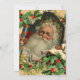 En klassisk vintage julkort med Tomten och järnekörsbär där Tomten sticker ut från kortet. Denna julillustration är baserad på ett gammalt julkort från 1800-talets viktorianska era, med en klassisk tomte som ler mot oss.
