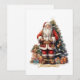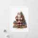 Bilden visar en förtjusande, tecknad tomte, som svämmar över av livfulla färger. Tomten, med sina rosiga kinder och tindrande ögon, är iklädd sin traditionella röda dräkt, komplett med en fluffig vit trimning och ett brett svart bälte. Hans hatt hänger lite snett, med den vita pom-pomen precis ovanför hans glada ögon. Hans vita skägg är fluffigt och välvårdat, vilket bidrar till hans glada utseende. Han står framför ett fint dekorerat julgran, som är prydd med en mängd färgglada dekorationer - skinande glaskulor, tindrande ljus och glittrande tinsel. Stjärnan på toppen av granen lyser starkt och kastar ett varmt ljus på tomtens glada ansikte. Den övergripande