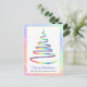 Brevkortet hälsning har ribbon Julgran i regnbåge färg med vitt snöflingor. Text "God jul" och personlig med ditt företag namn. Baksidan innehåller anpassningsbar och företagets logotyp. Perfekt för att skicka årshälsningar till klienter, anställda och alla på din lista.
