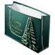 Ett fantastiskt skript i guld på en presentpåse i elegant grönt Julgran party som ge den unika illusionen av tittar 3D-format, komplett med en söt stjärna högst upp på helgdag. En modern handskriven skrapa ovanför din personlig familj namn.