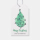 Dessa festliga märkre dekoreras med en vit grönt vattenfärg Julgran. De säger God jul i snyggtens skripttypografi. Enkelt anpassade. Ursprunglig vattenfärg © Michele Davies.
