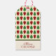 Elegant Juletiketter, visa mönster i Julgran och texten "God jul" som kan vara personlig. Designen använder rött, grönt och beige färg. Den här märkrn är perfekt för dina julklappar den här säsongen.