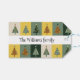 Den här vackra och festliga designen har ett Julgran mönster i beige, grönt, sage och gult. Lägg till ditt namn eller din familj namn för att göra det unikt.