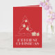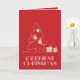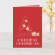 Den heligaste julen i ord, en skiss av träd med faux guld-folie och presenter finns på ett rödvikigt julhälsningskort i helgdag. MATCHING-objekt i vår butik.
