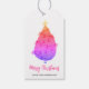 Dessa festliga märkre är dekorerade med en vit rosa vattenfärg Julgran. De säger God jul i snyggtens skripttypografi. Enkelt anpassade. Ursprunglig vattenfärg © Michele Davies.