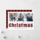 Den här designen har en traditionell fotokortmall i God jul, med en klassisk buffalo-kontroll av anpassningsbar elegant, en enkel typografi zjul Julafton, ett multifoto-rutnät med tre foto, röd och svart buffel plaid, personlig personlig rustik modern, söt mönster typografi stil, enkel digital vintage, ett roligt julkort, god jul-kort