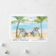 Skicka varmt helgdag med det tropiska julkortet med handflatan träd dekorerat med färgat ljus och två stripade strandstolar som läggs med festliga vågor vid havet. Perfekt för kustfamiljer, strand älskare eller någon som firar jul i sol.