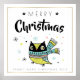 Tecknaden Klar jul i uggla med God jul Typografi i svarta, söta julstjärnor och guld ram. Anpassadets familj namn.