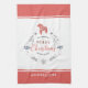 Utsmyckning vid jul bestående av God jul typografi med snöflak och vinter-lövträd som spräcker fredsfåglar och en söt häst. Blå-grått och korallrött. Valfritt monogram.