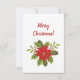Målning av jul Unicorn med röda poinsettia-blommor och grönt lämnar på mörkens bakgrund. På baksidan finns en poinsettia-blomma med grönt löv och God jul.