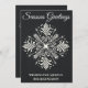 Skicka önskemål med det här unika och elegant God jul-kortet, med ett vackert snöflingmotiv på framsidan och anpassadet på baksidan. Den invecklade snöflingan, som ställs in mot mörkens bakgrund, skapar ett festligt och tidlöst utseende. Anpassa kortets framsida och baksida med din familj namn och helgdag för att göra det unikt för dig. Perfekt för att skicka hälsning till vänner och familj under årstiden är detta kort designat att imponera på med sin klassiska charm och personliga beröring.
