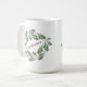 Snygg hälsning på en mugg. grönt och utformning av frisk andning och God jul hälsning.