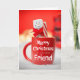 Omrörning av en röd mugg fylld med varm choklad, denna glada marshmallow snöman gör ett bedårande sätt att önskar din speciella vän en God Jul.