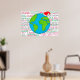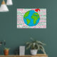 Denna poster trycks med en handritad glob med en fin Jultomten hatt. Bakgrunden är ordspråket "God jul" på flera språk, bland annat engelska, spanska, Fransk, ryska, Xhosa med flera!
