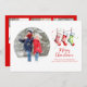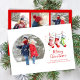 Denna design har ett glatt julkort med vattenfärg strumpor, en mall för fyra 4 foto collage, med en söt vintage stil, en enkel minimalistisk och en elegant penselskrift, med elegant trendig, röd och grön stil, en färgrik rolig, högtidlig fotokort.