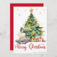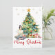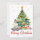 God jul, vattenfärgen träd och yoga-flickan julkort