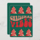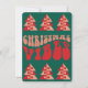 Retro Groovy-julkort med rött och rosa Julgranar och citat under en djup vinterbakgrund i grönten. Vänd kortet för att anpassa texten. Skaffa dig en skugga på julen!