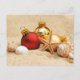 En sandstrand med julprydnadsföremål som skildrar ett varmt väder-helgdag. Perfekt för din varma väderresa eller plats! Önska någon God jul från andra sidan havet - helt anpassade för dig att personalisera som du vill!