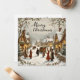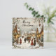 En stil-julscendesign i vintage. Snö täckte gata och tak över huvudet, folk på gatan med presenter. Texten på baksidan är helt anpassade. Om du inte vill använda textutrymmet gömmer du det.
