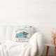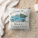 I anpassningsbar kan dekorativ kudde, med en ljusblå Lastbil i vintage som bär Julgran i det moderna jordbruksföretaget stil med en vit rustik träbräda som texturerats bakifrån, vara personlig med ett namn i familjen, kort-God jul-budskap och ett monogram på lastbil dörr i svartantik typografi. Designad av © Tim Coffey.