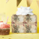 Vacker julförpackningspapper med tekakel, vintagepappersbakgrund. En vacker gren av järnek med röda bär pryder papperet.