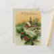 Anpassade Vintage julkort med snö-täckta kyrkoscen i land.