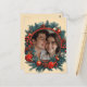 Underbart vykort med lätt jultema. Det finns ett cirkulärt ram som du kan fylla med ett eget foto och en egen text!