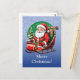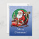 Ett julkort som omedelbart för helgdag till händer. Det finns ett glatt Jultomten, alla leenden, som rider sig genom en snökväll, och ett glatt "God jul!" hälsning dig i ett festligt teckensnitt. Slåret är utslitet i den klassiska julen färg - vibrerande , gröntar och en liten bit guld. Det är perfekten kort som hjälper dig att njuta av julhelgen och skicka ett leende till dina älskade!