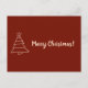 Det här vykortet presenter är en klassisk och elegant design som skickar ditt festliga hälsning den här julhelgen. Visningarna på framsidan är ett minimalistiskt Julgran, som skisseras i ett känsligt vitt som står i bjärt kontrast till riken, djup röd bakgrund, som fångar helgdag traditionella färg. Längst upp i träd sitter en ljus stjärna, som leder ner till träd bas och skapar en enkel men kraftfull symbol för julljuren. "God jul!" i hälsning har en framträdande plats i ett robustigt skript som kompletterar trädens linjära utformning. Detta tidlösa budskap förmedlar varmt säsongens anda till vänner, familj eller kolleger. Varje del av vykortet, från det främre visuella inslagen till det inneslutna budskapet på baksidan, är helt och hållet anpassade. Detta gör det möjligt att lägga till en personlig beröring, t.ex. ett meddelande om personlig, skapar kortet en unik och speciell korrespondens som mottagarna säkert kommer att hålla. Oavsett om du tittar att skicka en traditionell hälsning eller något mer personlig, ger det här vykortet en perfekt för att uttrycka önskemål.